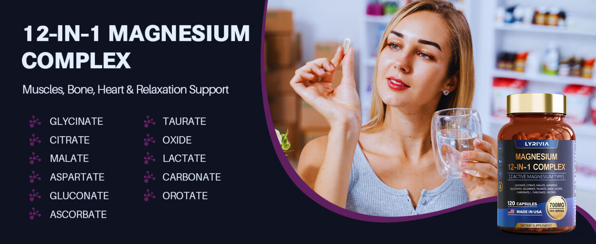 Lyrivia Magnesium Complex Supplement | 12-in-1 High-Absorption Formula