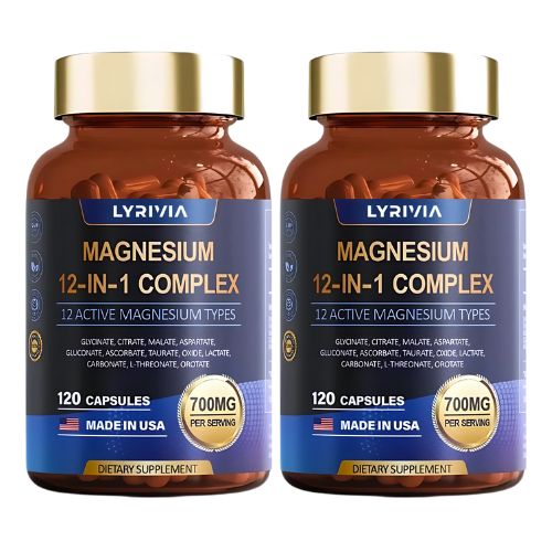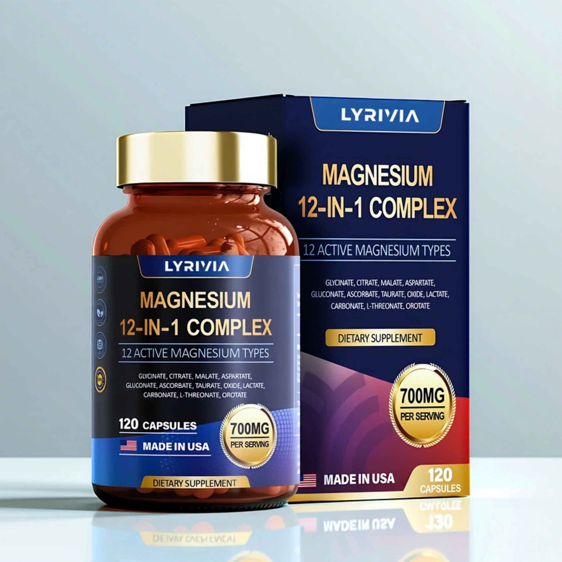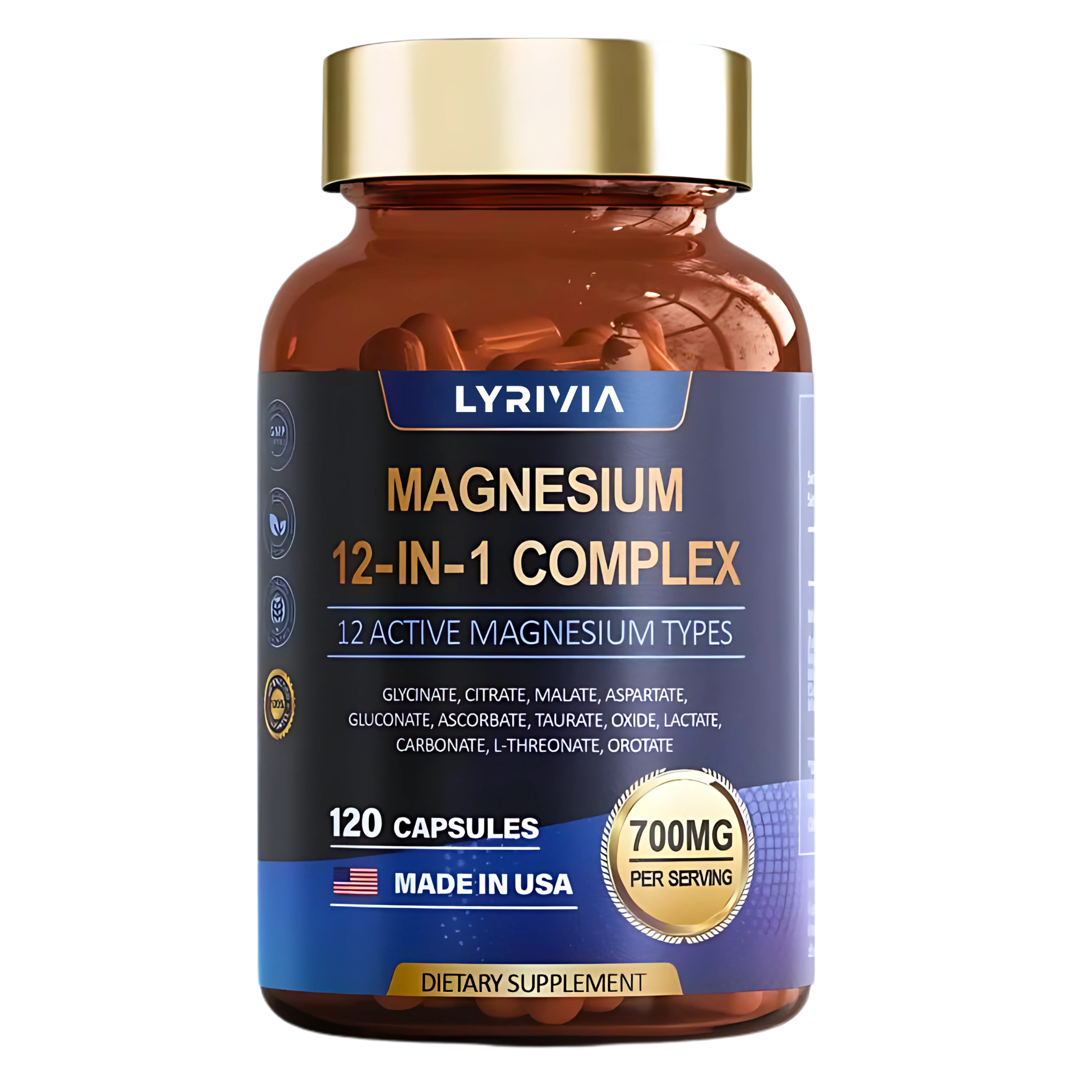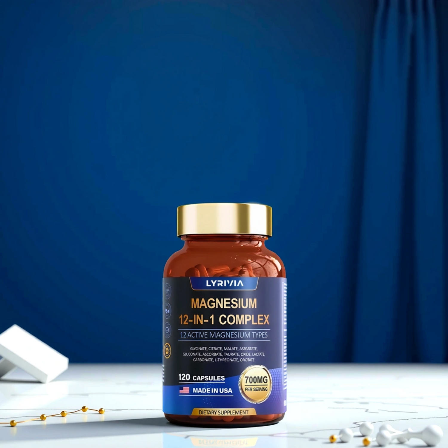 Lyrivia Magnesium Complex is the ultimate wellness boost. With its 12-in-1 formula, it supports sustained energy, helps you achieve restorative sleep, reduces stress and anxiety, and aids in muscle recovery. Unlock a balanced, energized, and calm version of yourself with every dose of Lyrivia.