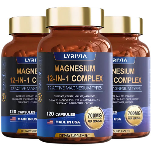 Lyrivia Magnesium Complex delivers a comprehensive 12-in-1 formula with 12 distinct magnesium types, each carefully selected for its unique benefits. From heart and nerve support to bone strength and muscle relaxation, this advanced blend works synergistically to give your body the full spectrum of magnesium benefits. Give your body the flexibility it needs to stay strong, balanced, and healthy.